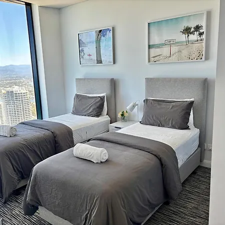 Stunning Ocean View 2 Bedroom Surfers Paradise位于黄金海岸的路环区,住宿场所配有健身中心和游泳池。 度假屋设有2间卧室和2间浴室。